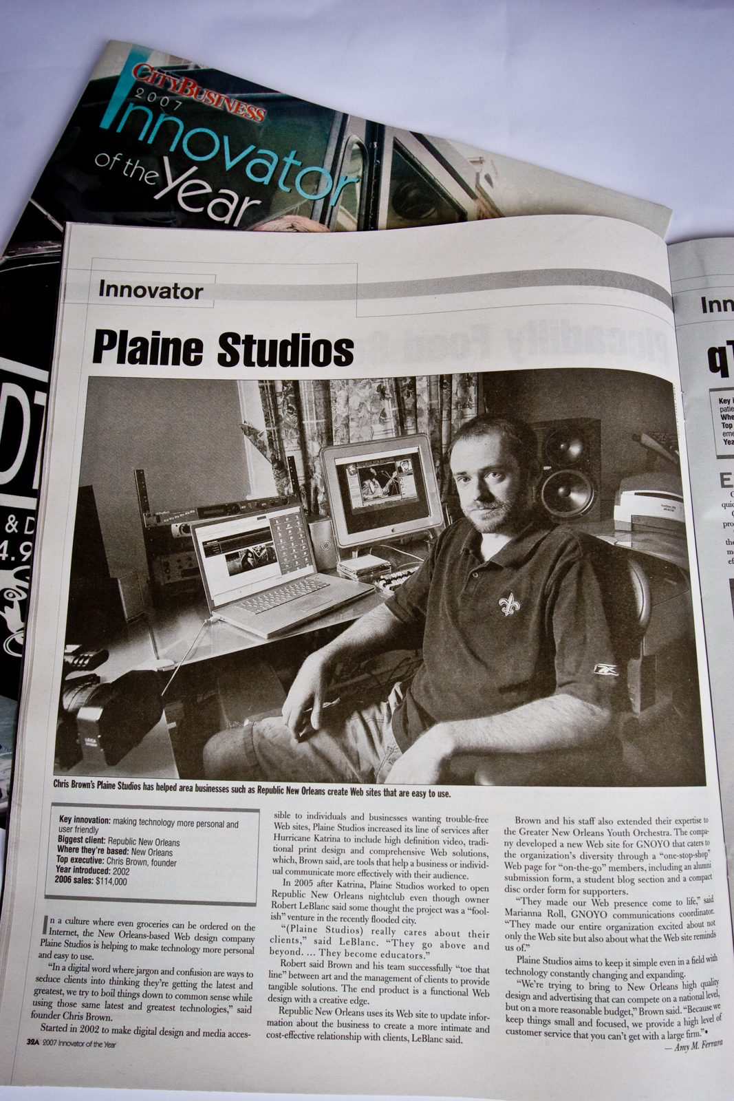 - Plaine Studios honored as a 2007 New Orleans CityBusiness Innovator of the Year.