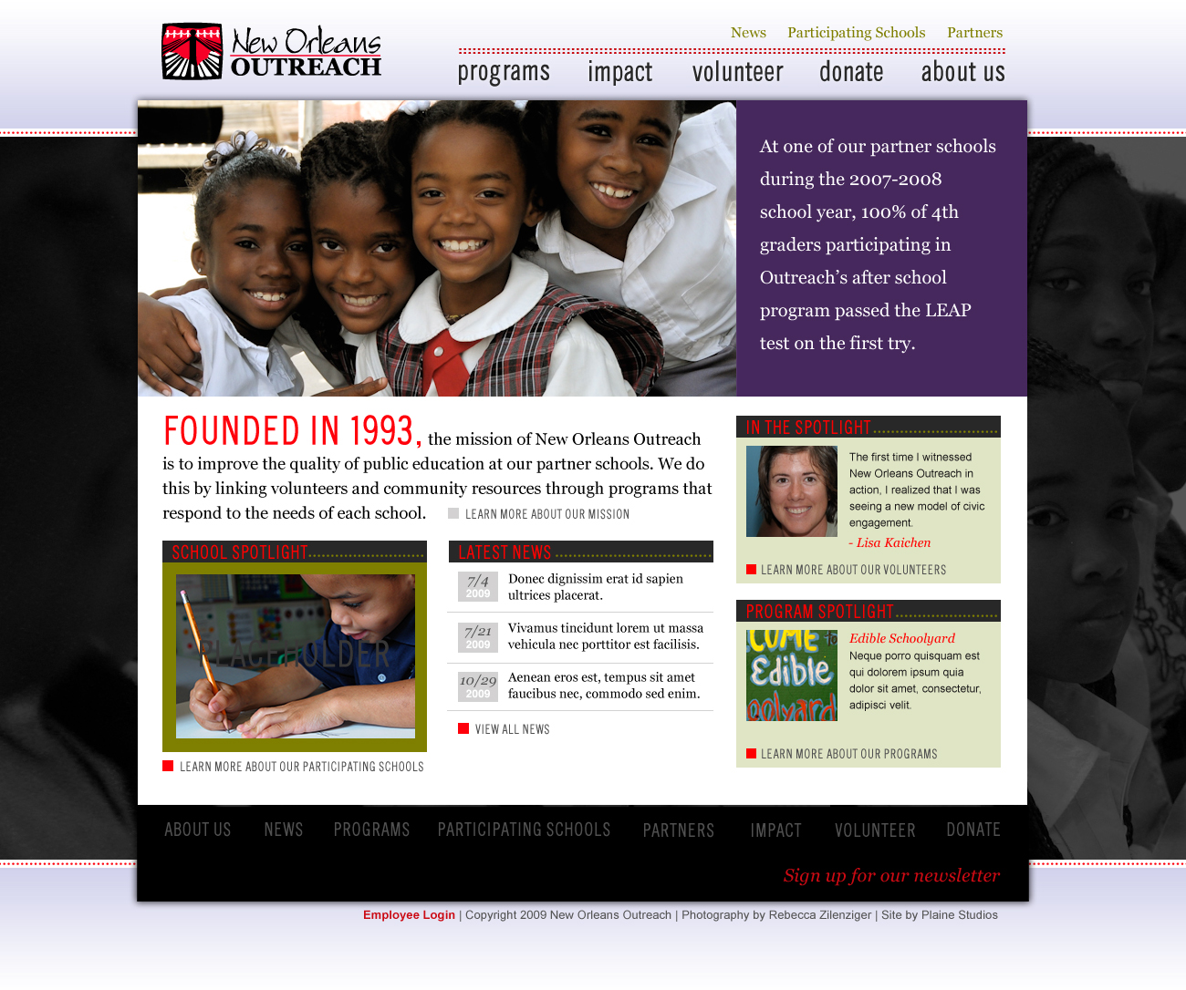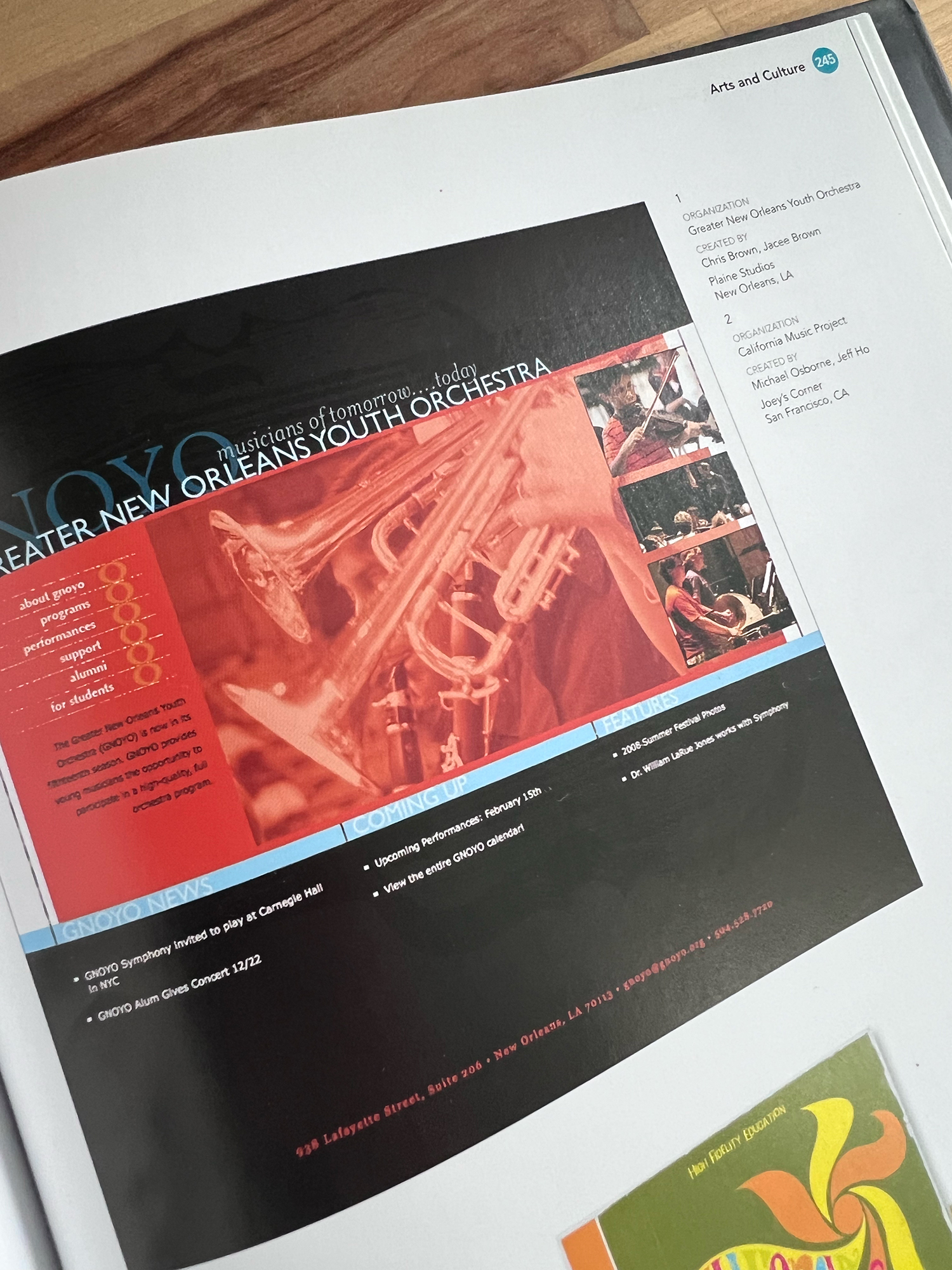 - Greater New Orleans Youth Orchestra website featured in the book Designing for the Greater Good, spotlighting top cause-related marketing and non-profit design.
